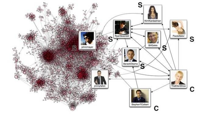En el caso de Twitter, tras analizar en 2009 una muestra de datos de 40 millones de usuarios y 1500 millones de seguidores (followers), los investigadores han comprobado que cada usuario tenía un promedio de 25 seguidores, mientras que estos tenían, a su vez, 422 de media, es decir, casi veinte veces más. “Esto hace que los seguidores de una persona ocupen en una red social un papel que les hace relevantes a la hora de propagar o recibir información”, explica otro de los investigadores, Manuel García Herranz, del departamento de Ingeniería Informática de la Universidad Autónoma de Madrid.